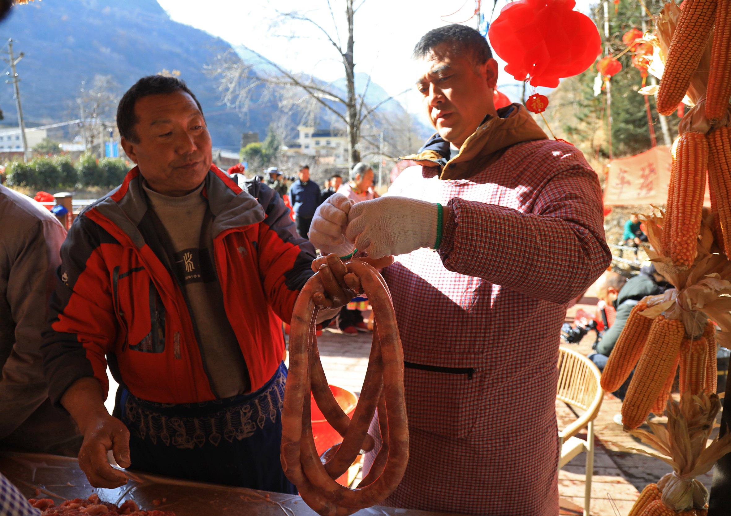 当日清晨开源策略,乡亲们便自发齐聚,清洗器具、准备食材,合力完成传统杀猪流程。许多游客也参与其中,体验杀年猪的快乐。袅袅炊烟中,红烧肉、炒猪肝、猪血汤等地道农家菜肴香气四溢,构成了年猪宴最质朴的烟火滋味。