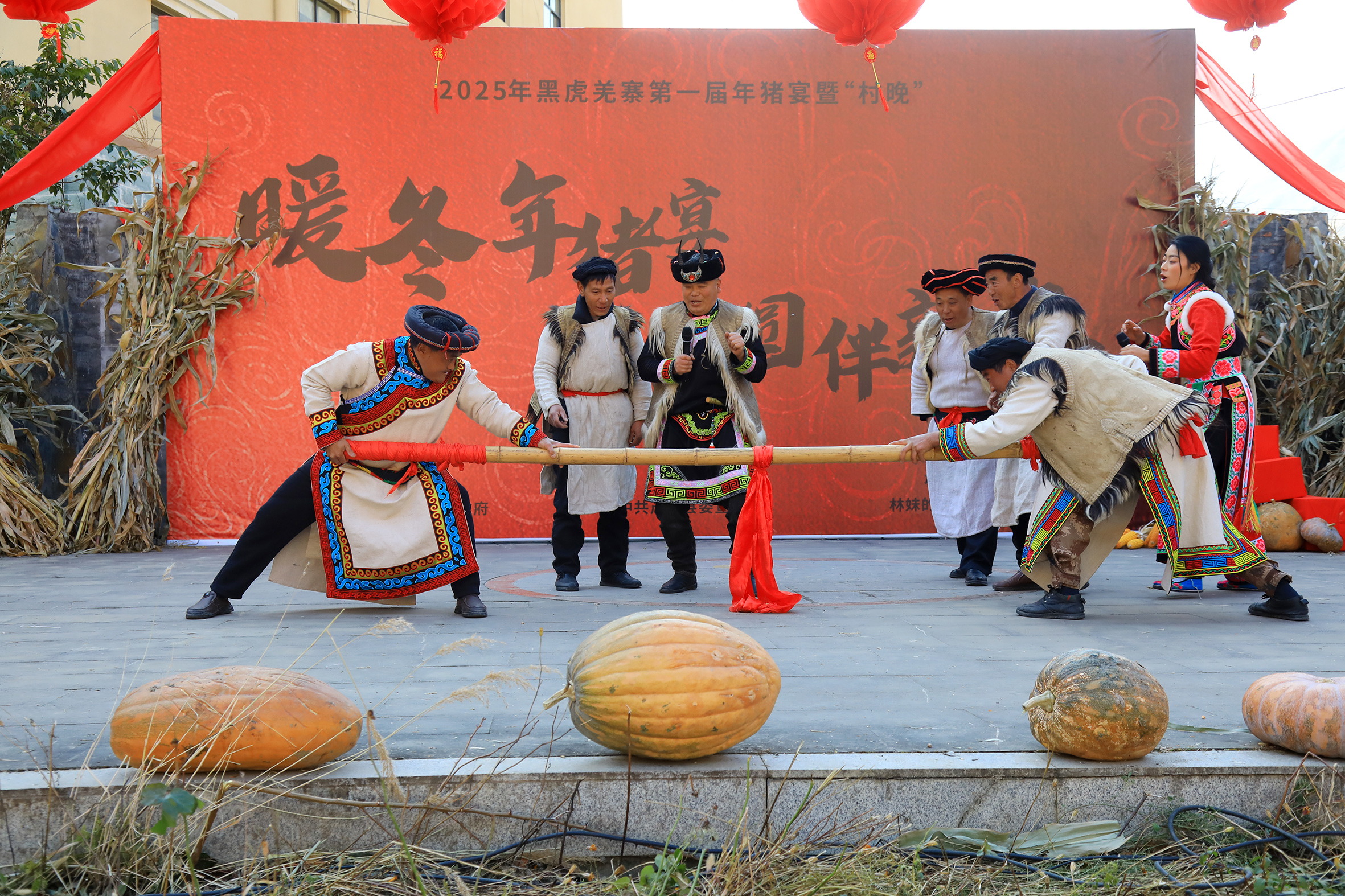 据悉,此次活动是黑虎镇“千年羌碉,万年忠孝”文化品牌与农文旅融合发展的首次尝试,通过“年猪宴+村晚”的形式,让传统民俗活起来、火起来 。