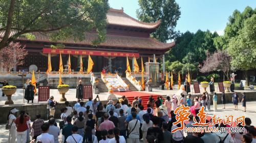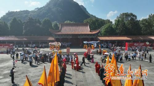 当天掌上世界,九嶷山舜帝陵景区开启“九嶷赐福、万人拜舜” 主题活动,锣鼓喧天,龙狮开道,游客们沉浸式体验国家级非物质文化遗产“舜帝祭典”,传承中华优秀传统文化。宁远县韦然专门学校校长陈韦然告诉记者:“让游客参与体验祭舜大典的同时,了解我们宁远当地的民俗文化、特色舞龙舞狮。”